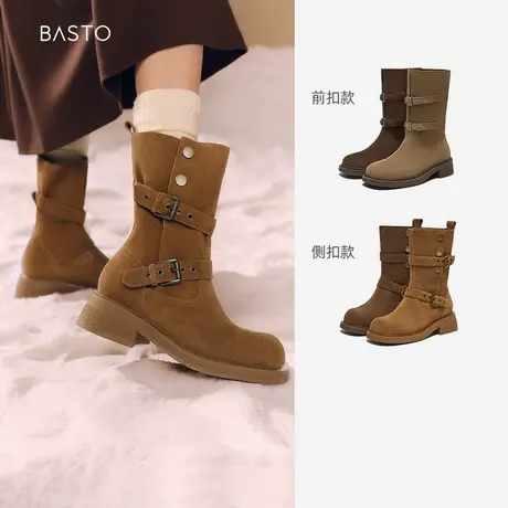 【好物体验专享】百思图2025冬季商场新款骑士靴女短靴W1120DD5